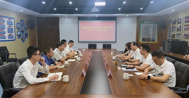 9月7日,冶金物資黨委委員、副總經理、戰略發展委員會常務副主任陳建帶隊赴長三角(湖州)產業合作區考察,對接洽談合作事宜。公司辦公室、長材事業部、鋁事業部、杭鋼智安等相關人員參加。長合區黨工委副書記、管委會副主任凌躍鋒等熱情接待。