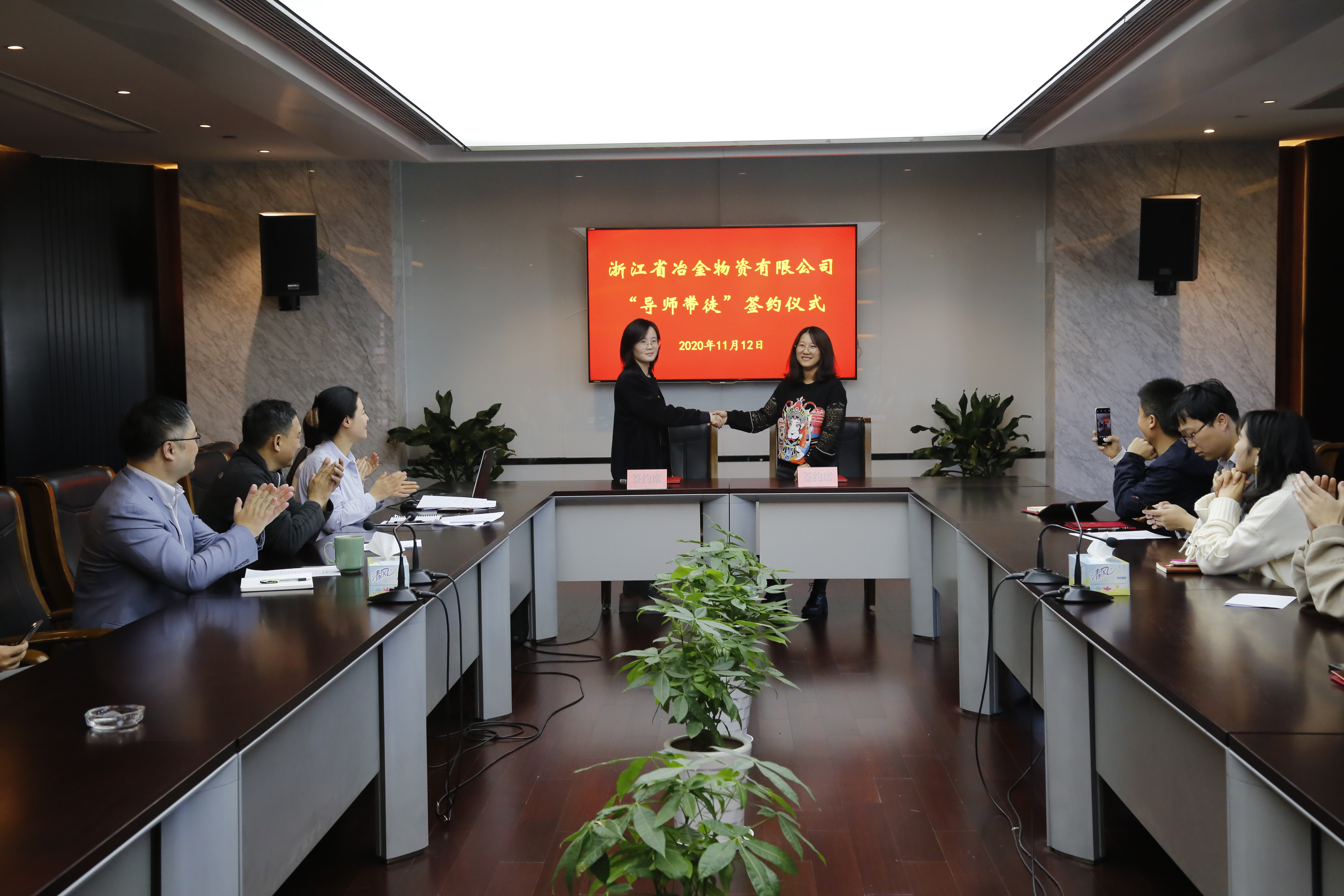 近日,浙江省冶金物資公司舉行2020年新職工導師帶徒簽約儀式。冶金物資公司黨委書記、董事長鄭浩出席簽約儀式并講話,儀式由工會主席鐘智萍主持。